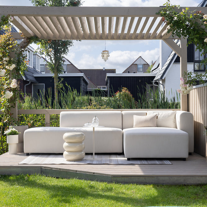 Deze outdoor zetel kan het hele jaar door buiten blijven staan. Maar wil je de zetel extra lang mooi houden, dan zijn er losse beschermhoezen verkrijgbaar.
